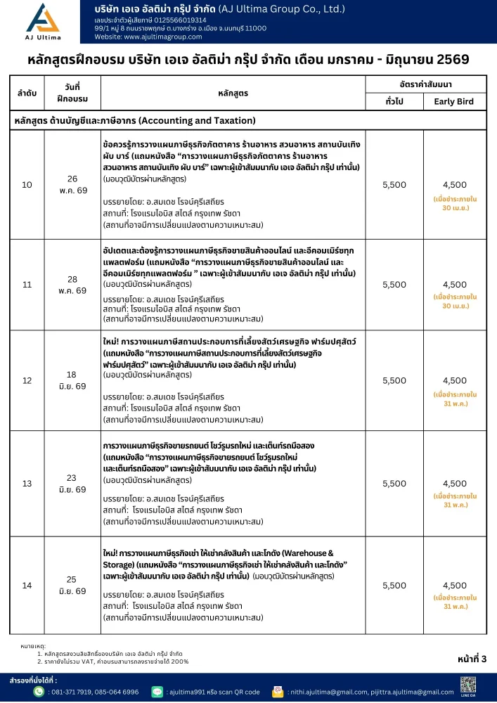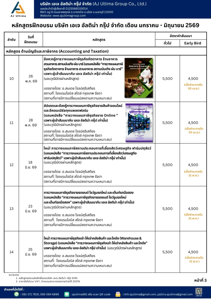 ตารางสัมมนาทุกหลักสูตร