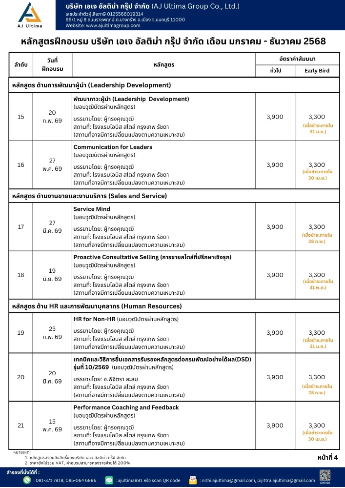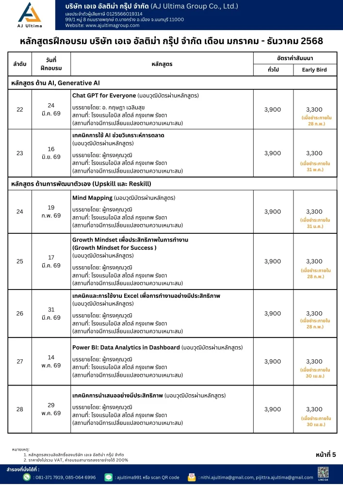 ฝึกอบรมและสัมมนาภายนอกบริษัทฯ (Public Training)